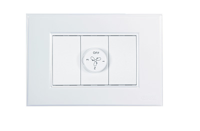 DimmersLIVIA’s aesthetically designed fan controllers are equipped with a 360 degree rotary knob for ease of speed regulation. These controllers ensure a smooth, hum-free operation and a uniform speed variation. They are available in one module and two modules sizes